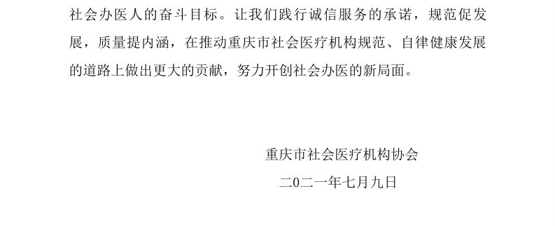 重庆市社会医疗机构协会由重庆市社会资本(国有、企业、民营、外资)举办的各级各类医疗机构、企事业单位和社会团体以及在促进重庆市社会医疗机构发展的相关领域中具有一定影响力的社会人士自愿组成的全市性、行业性的非营利性社会组织,是依法成立的重庆市5A级社团法人。